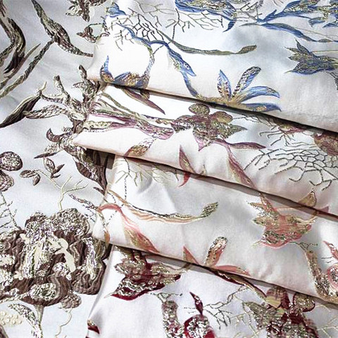 Metallic Flower Jacquard geprägter Brokat stoff für Hochzeits kleid Brokat kleid